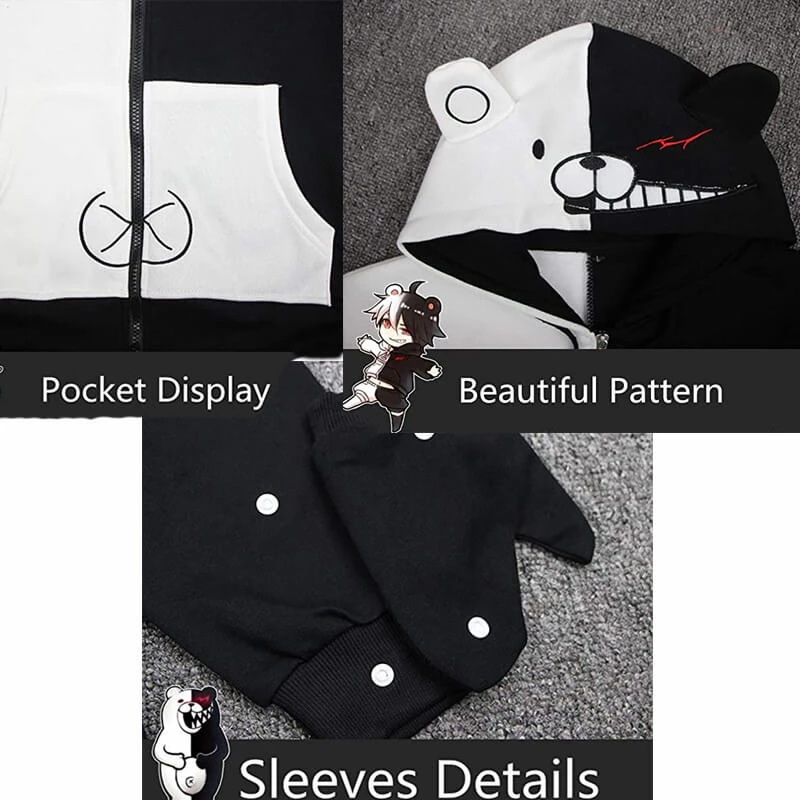 Danganronpa Monokuma Black White Bear Hoodie Jacket