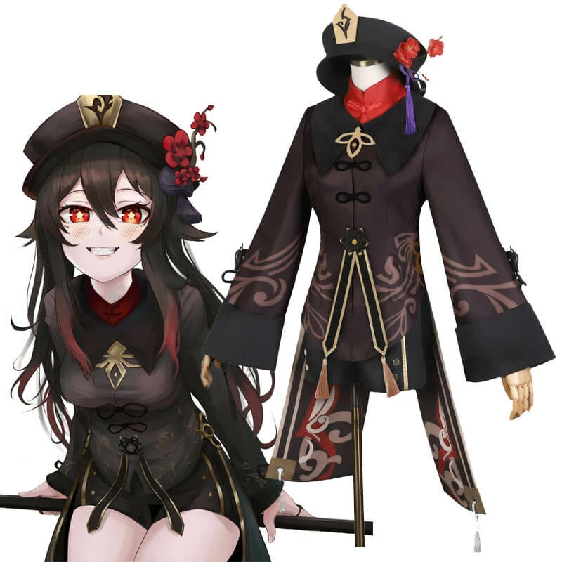 Game Genshin Impact Hu Tao Cosplay Costume Full Set Halloween Outfit