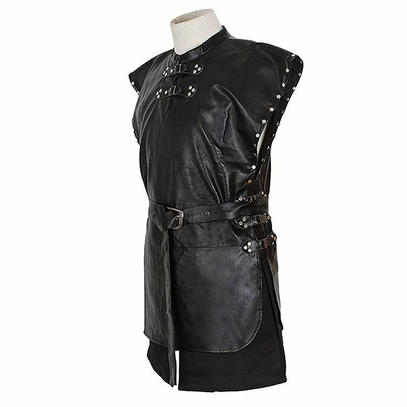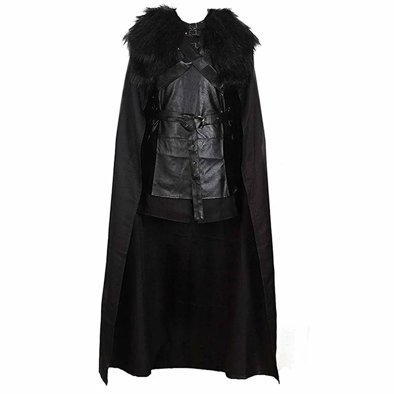 Game of Thrones 5 Jon Snow Costume Black PU Jacket Full Outfits Mens Halloween Cosplay