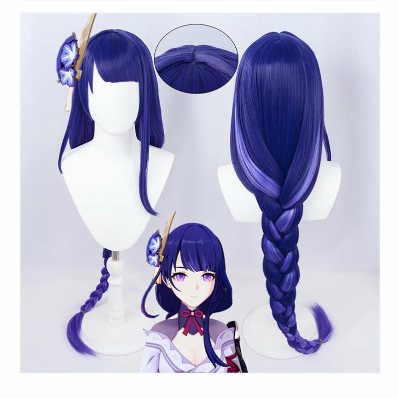 Genshin Impact Raiden Shogun Cosplay Baal Wig Purple Blue Mixed Color Braids Ponytail