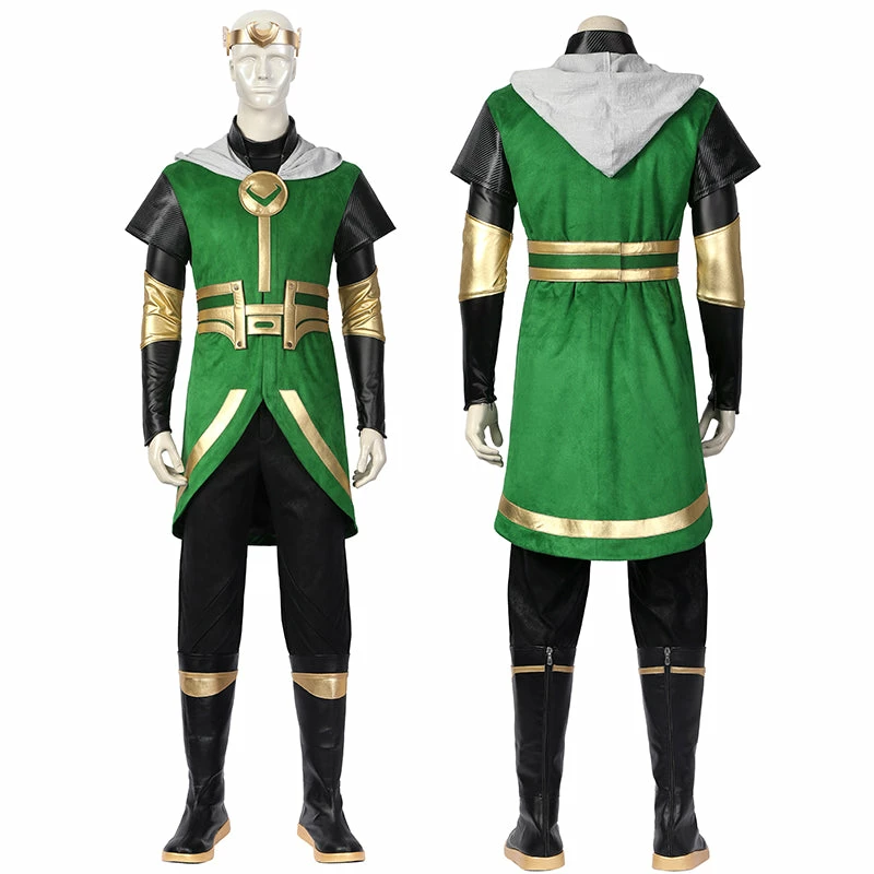 Kid Loki Cosplay Costume Superhero Green Suit Halloween Outfit