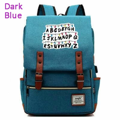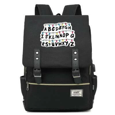 Stranger Things Backpack College School Bag Laptop Daypack(Black USB)